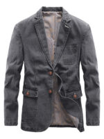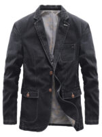 Men’s Autumn-Winter Lapel Collar Knit Denim Jacket with Long Sleeves