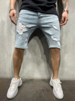 Men’s Fashion Mid Waist Ripped Slim Short Jeans