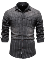 Be the first to review “Men’s Heavy Washed Distressed Striped Denim Shirt” Cancel reply