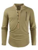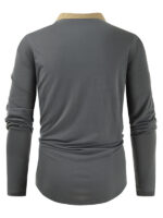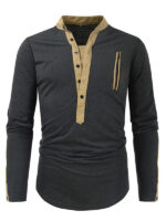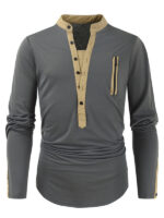Men’s New Outdoor Tactical Zipper Colorblock Henley Collar Long Sleeve T-Shirt