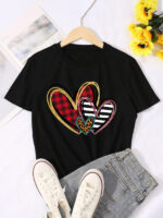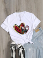 Mother’s Day Valentine’s Day Leopard Love Print Top Short Sleeve T-Shirt