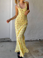 New holiday style floral print suspender dress