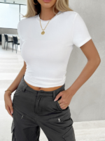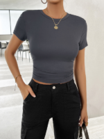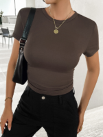 Women’s casual slim fit solid color pullover short sleeves
