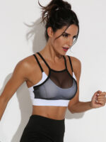 New splicing mesh sports bra black and white yoga fitness yoga vest with chest pad