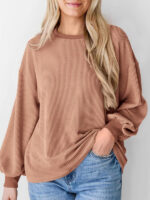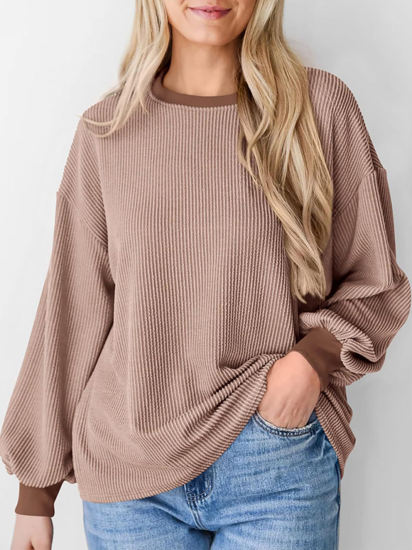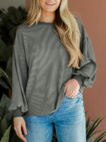 Be the first to review “New textured small pit stripe loose long-sleeved T-shirt top fashionable casual sweatshirt”