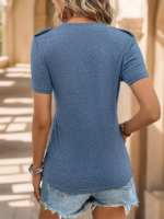 New V-neck basic T-shirt comfortable casual button pocket T-shirt top