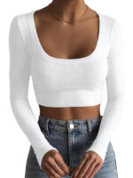 New women’s large round neck long-sleeved ultra-short slim fit navel-baring bottoming T-shirt top