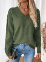 Be the first to review “New Women’s Loose Knitted V-Neck Open Back Slit Sweater” Cancel reply