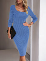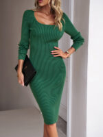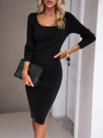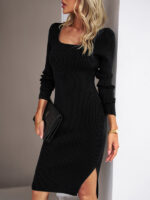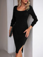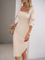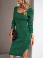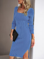 New Women’s Square Neck Elegant Package Hip Long Skirt Woolen Dress