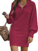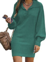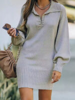 New women’s sweater mid-length skirt lapel lantern sleeve pullover loose knitted sweater