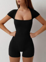 New yoga tight-fitting shoulder sleeve sports jumpsuit shorts