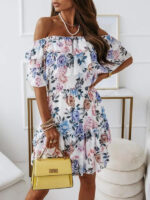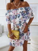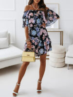 One-neck chiffon print commuter waist dress. Please use the size guide shown in our pictures. Before choosing a size, please read each element of the size guide carefully. Unique design, classic style, casual and comfortable. It is suitable for outing and leisure. The size is measured manually, and the error of 1-3cm is normal.