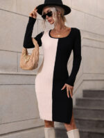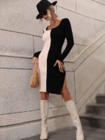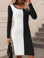This pullover commuter color block knit shift sweater dress is suitable for everyday casual occasions! Simple design makes boring seasons fun. A variety of matching options, it will make you feel confident and beautiful. It has a snug fit that won’t restrict your movement.