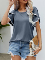 Round Neck Tassel Tulip Sleeve T-Shirt Casual Top Women