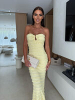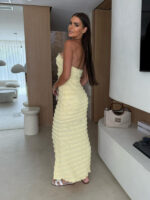 Sexy slim-fit tube top hip-hugging light yellow dress