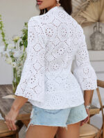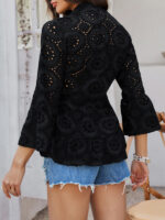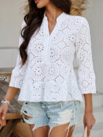 Be the first to review “Solid color hollow v-neck three-quarter sleeve shirt”