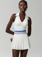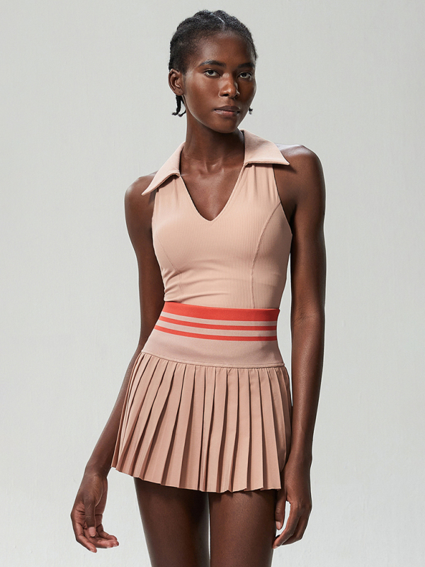 Sports Fitness Tennis Skirt Suit Women’s Anti-light Quick Drying V-neck Yoga Suit Two-piece Suit with Chest Pad