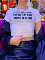 Women’s letter pattern printed Y2K short T-shirt. Please use the size guide shown in our pictures. Before choosing a size, please read each element of the size guide carefully. Unique design, classic style, casual and comfortable. It is suitable for outing and leisure. The size is measured manually, and the error of 1-3cm is normal.