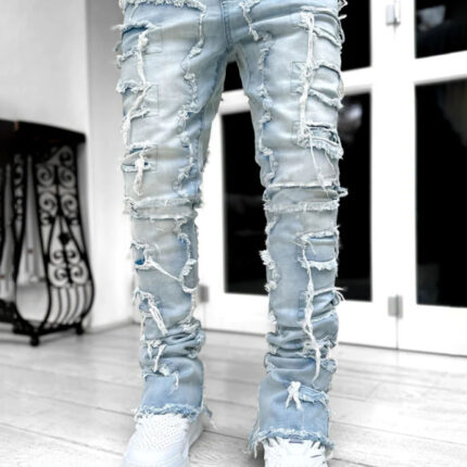 Trendy Fashion Casual Slim Denim Jacket Multi Pocket Button Stand Collar Workwear Jacket