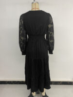 Be the first to review “V-neck waist lace long-sleeved solid color dress”