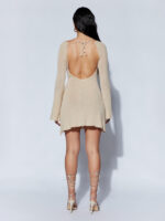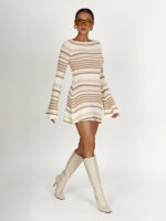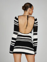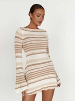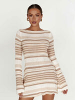 Be the first to review “Women’s bell sleeves backless striped slim knitted dress”