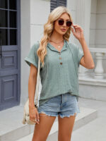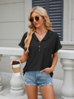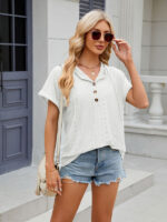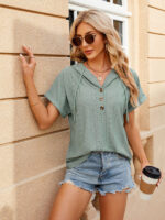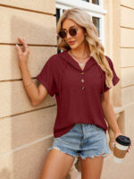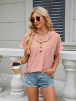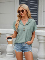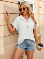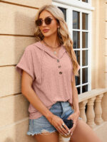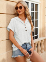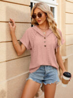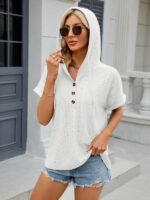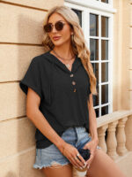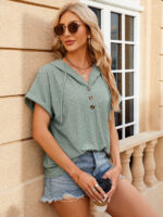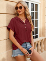 Women’s buttoned hooded drawstring short-sleeved T-shirt top