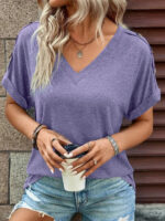Women’s Casual Solid Color Button Short Sleeve T-Shirt