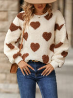 Women’s Christmas Valentine’s Day Plush Love Print Loose Long Sleeve Round Neck Pullover Sweatshirt