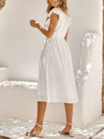 Women’s clothing European and American solid color V-neck waist fresh wind dress for women