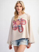 Women’s Colorblock Floral Patch Top Casual Loose Sweatshirt