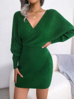 Women’s Cross V-neck bat skirt bag buttock dress wool dress
