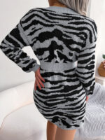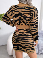 Women’s fashion tiger pattern Lantern Sleeve waist closed wool dress