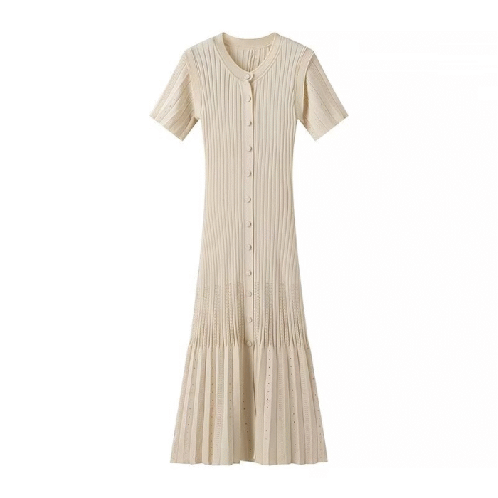 Women’s Fashion Two Color Knit Single Breasted Long Dresses Dresses