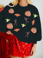 Be the first to review “Women’s Halloween Multicolor Sequins Loose Long Sleeve Sweatshirt Round Neck Top”