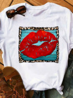 This sexy leopard print lips t-shirt is made of 95% polyester and 5% spandex, offering a comfortable and stretchy fit. With its round neck and short sleeves, this top is stylish and perfect for any season. Ideal for adding a touch of wild to your outfit.