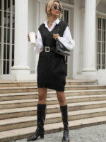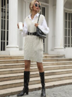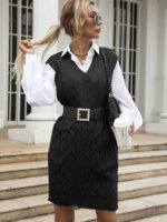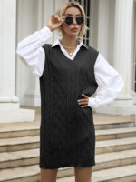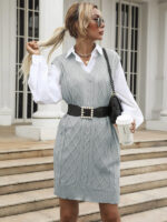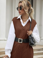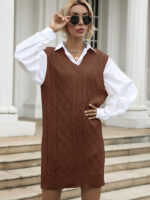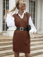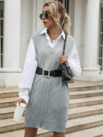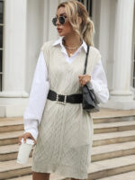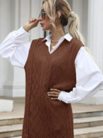 Women’s Long Solid Color V-Neck Vest Vest Knitted Sweater Dress