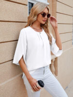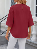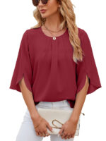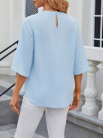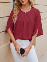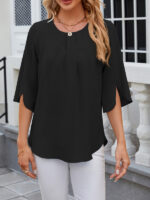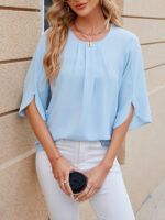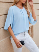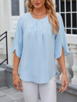 Women’s New Round Neck Quarter Sleeve Loose Chiffon Shirt Top