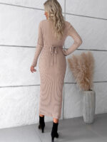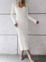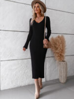 Women’s new style elegant solid color v-neck long-sleeved sweater dress