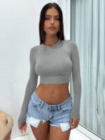 Be the first to review “Women’s new tight-fitting navel-baring hot girl outfit super short long-sleeved T-shirt”