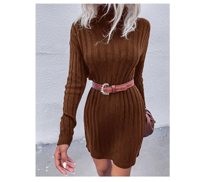 Design: Featuring a chic pit strip turtleneck and a loose fit silhouette, this dress is both stylish and cozy, perfect for winter.