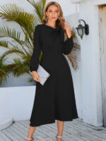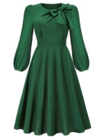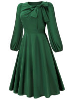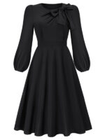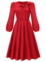Women’s round neck bow A-line mid-length dresses