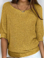 Women’s round neck three-quarter sleeve knitted sweater. Please use the size guide shown in our pictures. Before choosing a size, please read each element of the size guide carefully. Unique design, classic style, casual and comfortable. It is suitable for outing and leisure. The size is measured manually, and the error of 1-3cm is normal.