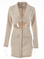 Women’s Sexy Fake Two Piece Lapel Long Sleeve Blazer Dress
