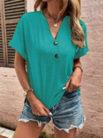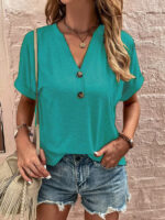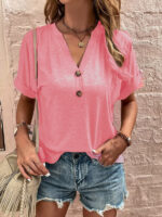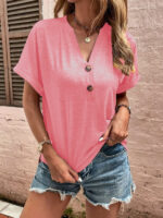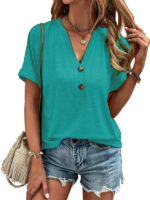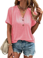 Women’s solid color casual button-up short-sleeve T-shirt with a stylish style and soft and comfortable fabric. Whether it is daily, going out, or working, it can be worn, and the washing method can be machine washed or hand washed. Fabric is wrinkle resistant and resistant to pilling. The size is measured by hand, and it is normal for there to be an error of 1-3cm.