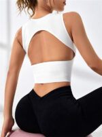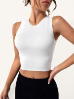 Women’s Solid Color Open Back Round Neck Sleeveless Sports Tank Top