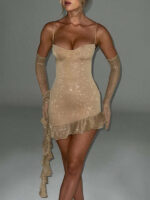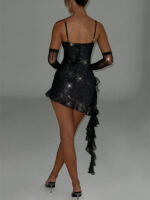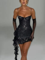 Be the first to review “Women’s suspender shiny ruffle dress with sleeves”