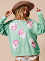 Women’s Sweet Sequin Sleeve Top Christmas Long Sleeve Sweater