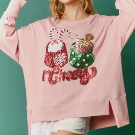 Christmas Candy Cup Sequins Sweatshirt Casual Loose Top